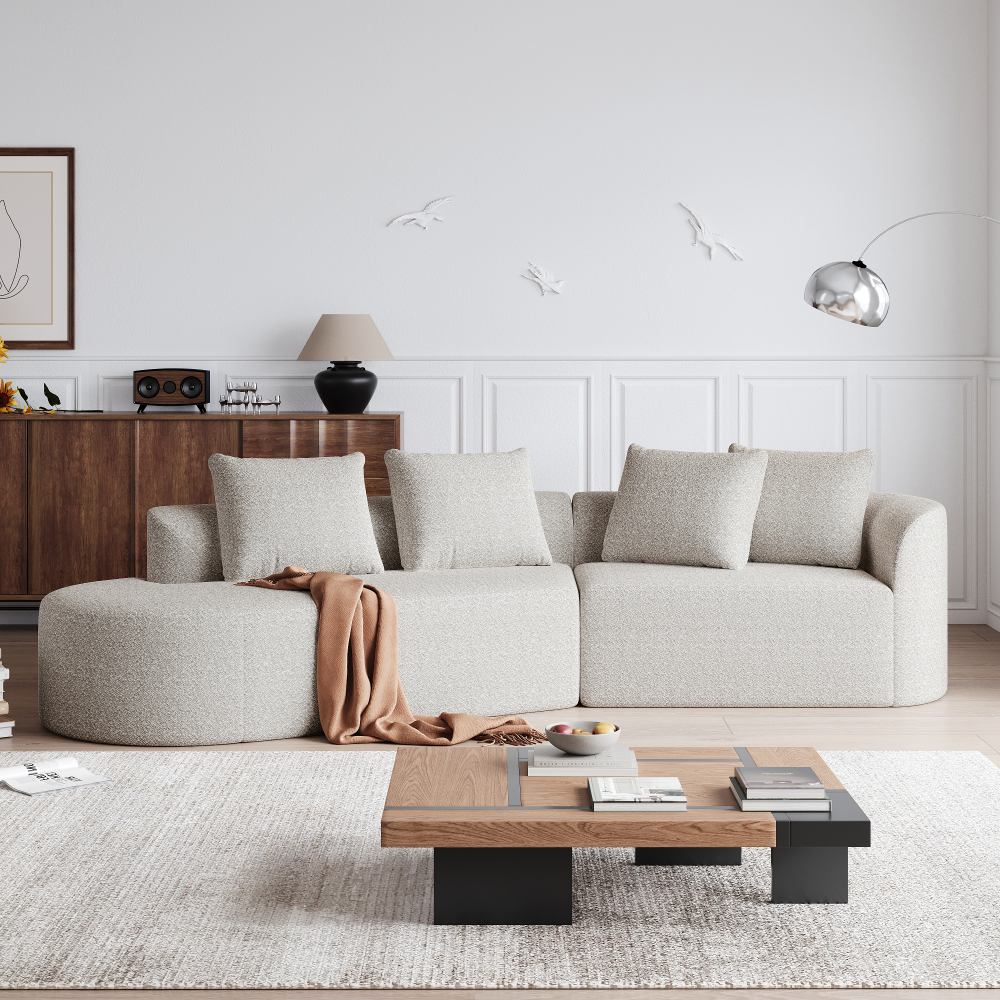 Modern Chenille Sectional Sofa - Oversized 112-Inch Curved Cloud Couch with 4-Seating, Extra-Wide & Deep Seat, Foam-Padded, Easy Assembly (Some steps), Modular Design Suitable for Living Room, Bedroom - No Wood Frame, Assembly Recommended