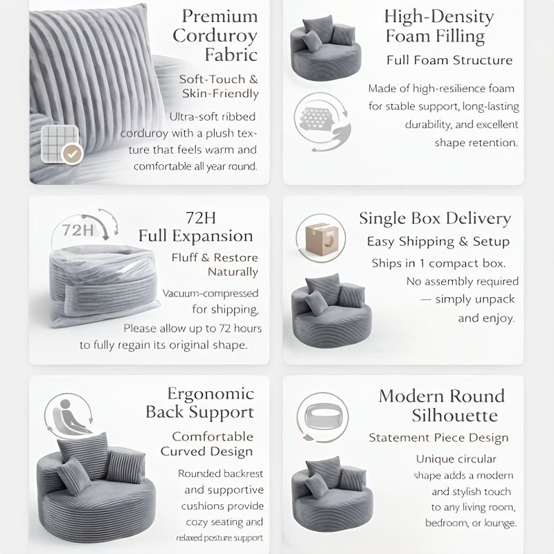 New Arrival: Round Corduroy Single-Seater Sofa. Soft And Comfortable, And Conveniently Vacuum-Packed, This Stylish And Practical Piece Is Perfect for Use in Both Living Rooms And Bedrooms, Making It Suitable for A Wide Variety of Settings